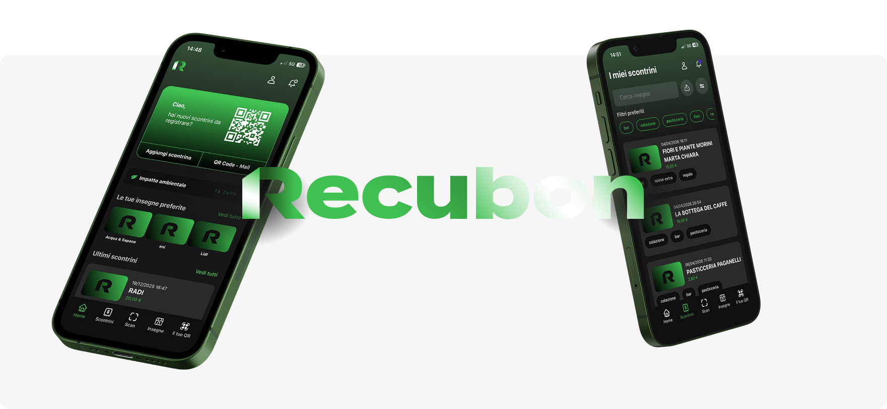 Recubon è il wallet universale per scontrini, coupon e fatture digitali. Una piattaforma innovativa che consente di ricevere, archiviare e gestire in modo semplice e sicuro documenti fiscali direttamente su smartphone. Recubon si propone come soluzione sostenibile, capace di ridurre lo spreco di carta e l’impatto ambientale, offrendo al contempo un servizio utile e innovativo sia per i consumatori che per le aziende.